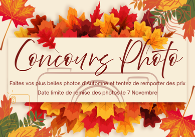 Le CVC vous propose un concours photo sur le thème de l'automne : remettez vos photos avant le 7 novembre en format papier ou en format numérique (sur clé USB à apporter à la vie scolaire ou à envoyer par mail à la vie scolaire)